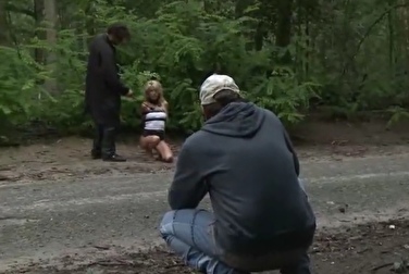 Трахает свою рабыню на дороге и водит на поводке по улице